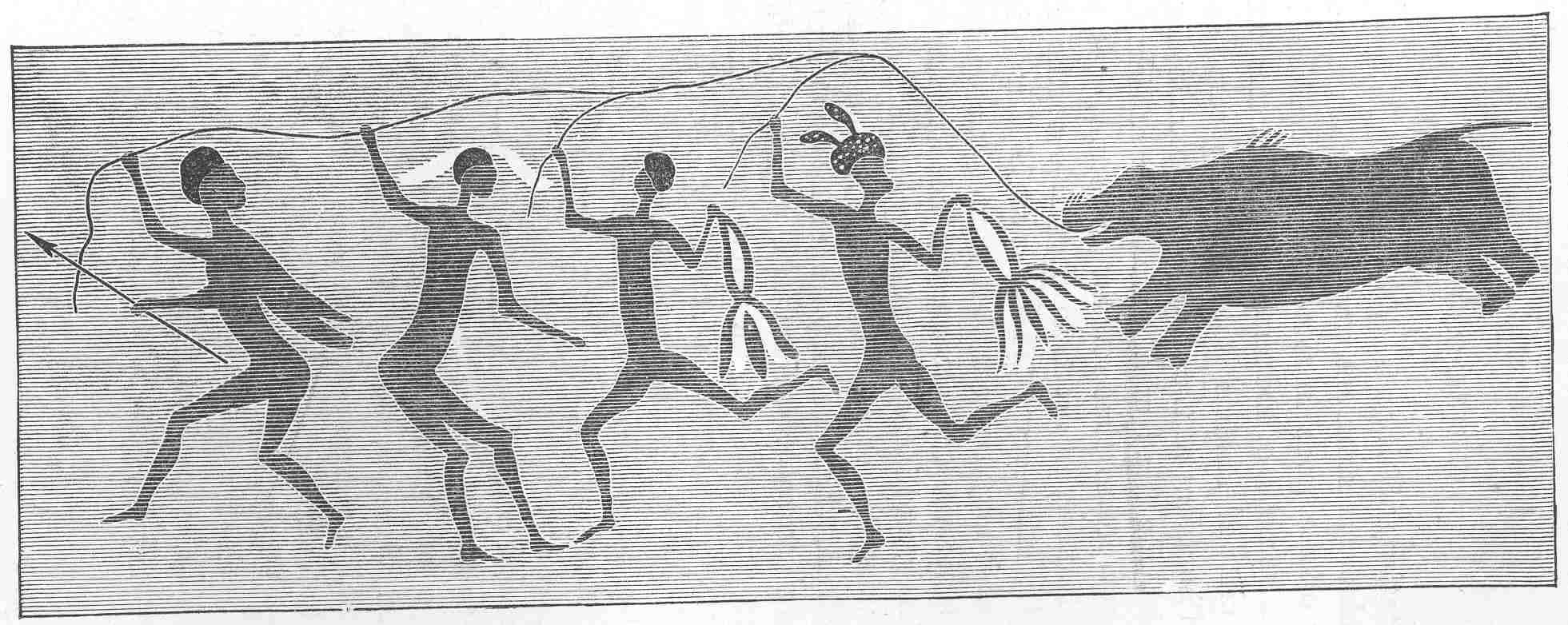 ‘Come now,’ as Herodotus would say, ‘I will show once more that the mysteries of the Greeks resemble those of Bushmen.’  In Lucian’s Treatise on Dancing, {41b} we read, ‘I pass over the fact that you cannot find a single ancient mystery in which there is not dancing. . . . To prove this I will not mention the secret acts of worship, on account of the uninitiated.  But this much all men know, that most people say of those who reveal the mysteries, that they “dance them out.”’  Here Liddell and Scott write, rather weakly, ‘to dance out, let out, betray, probably of some dance which burlesqued these ceremonies.’  It is extremely improbable that, in an age when it was still forbidden to reveal the ορyια, or secret rites, those rites would be mocked in popular burlesques.  Lucian obviously intends to say that the matter of the mysteries was set forth in ballets d’action.  Now this is exactly the case in the surviving mysteries of the Bushmen.  Shortly after the rebellion of Langalibalele’s tribe, Mr. Orpen, the chief magistrate in St. John’s Territory, made the acquaintance of Qing, one of the last of an all but exterminated tribe.  Qing ‘had never seen a white man, except fighting,’ when he became Mr. Orpen’s guide.  He gave a good deal of information about the myths of his people, but refused to answer certain questions.  ‘You are now asking the secrets that are not spoken of.’  Mr. Orpen asked, ‘Do you know the secrets?’  Qing replied, ‘No, only the initiated men of that dance know these things.’  To ‘dance’ this or that means, ‘to be acquainted with this or that mystery;’ the dances were originally taught by Cagn, the mantis, or grasshopper god.  In many mysteries, Qing, as a young man, was not initiated.  He could not ‘dance them out.’ {42}