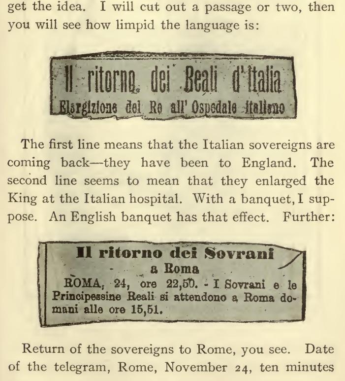 “I didn't mean so bad as that, Aleck; I didn't really mean immoral piety, I only meant—meant—well, conventional piety, you know; er—shop piety; the—the—why, you know what I mean. Aleck—the—well, where you put up that plated article and play it for solid, you know, without intending anything improper, but just out of trade habit, ancient policy, petrified custom, loyalty to—to—hang it, I can't find the right words, but you know what I mean, Aleck, and that there isn't any harm in it. I'll try again. You see, it's this way. If a person—”