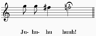 [11] Der Ruf des Baumkauzes gilt als Warnung und lautet, in Noten gesetzt, ungefähr: