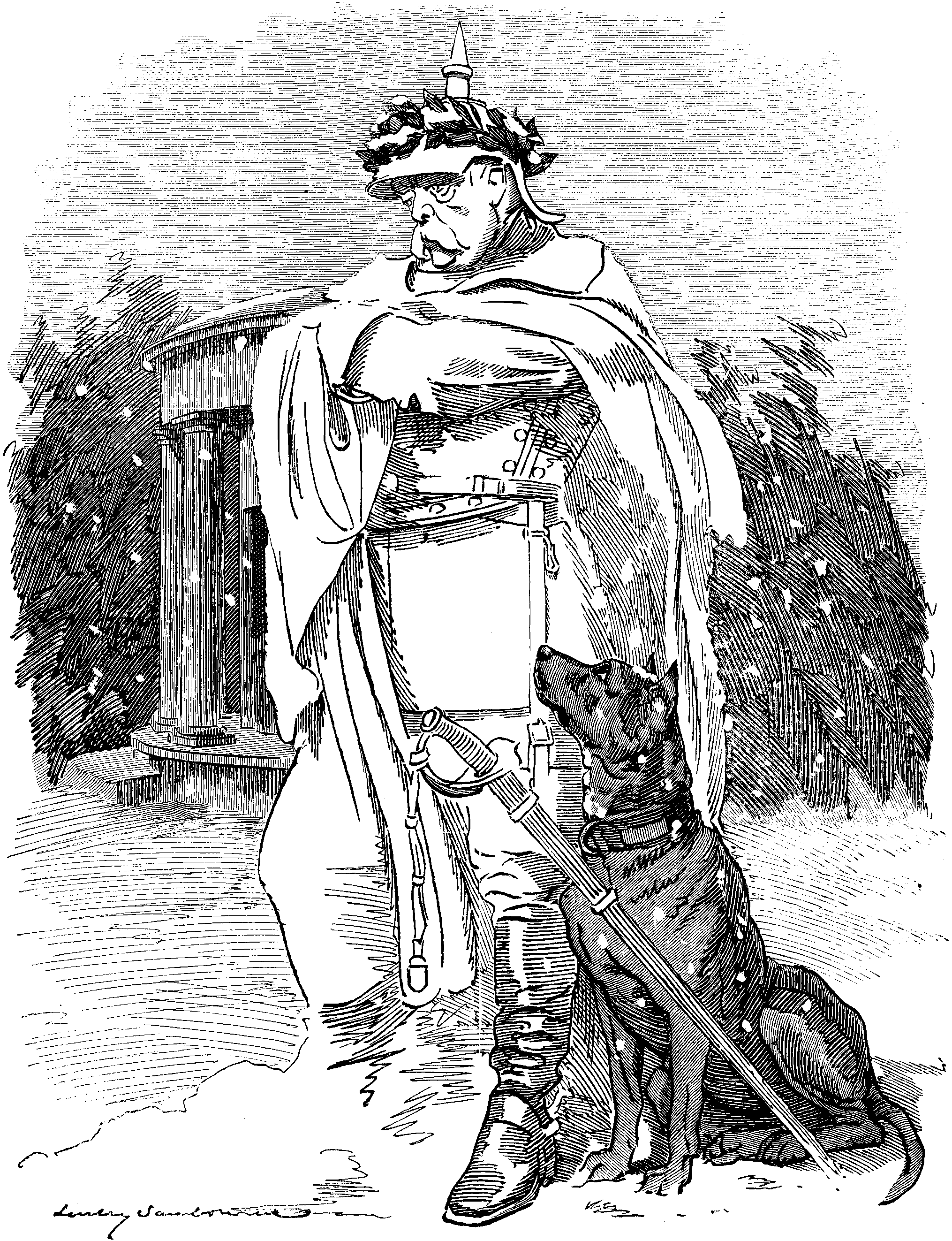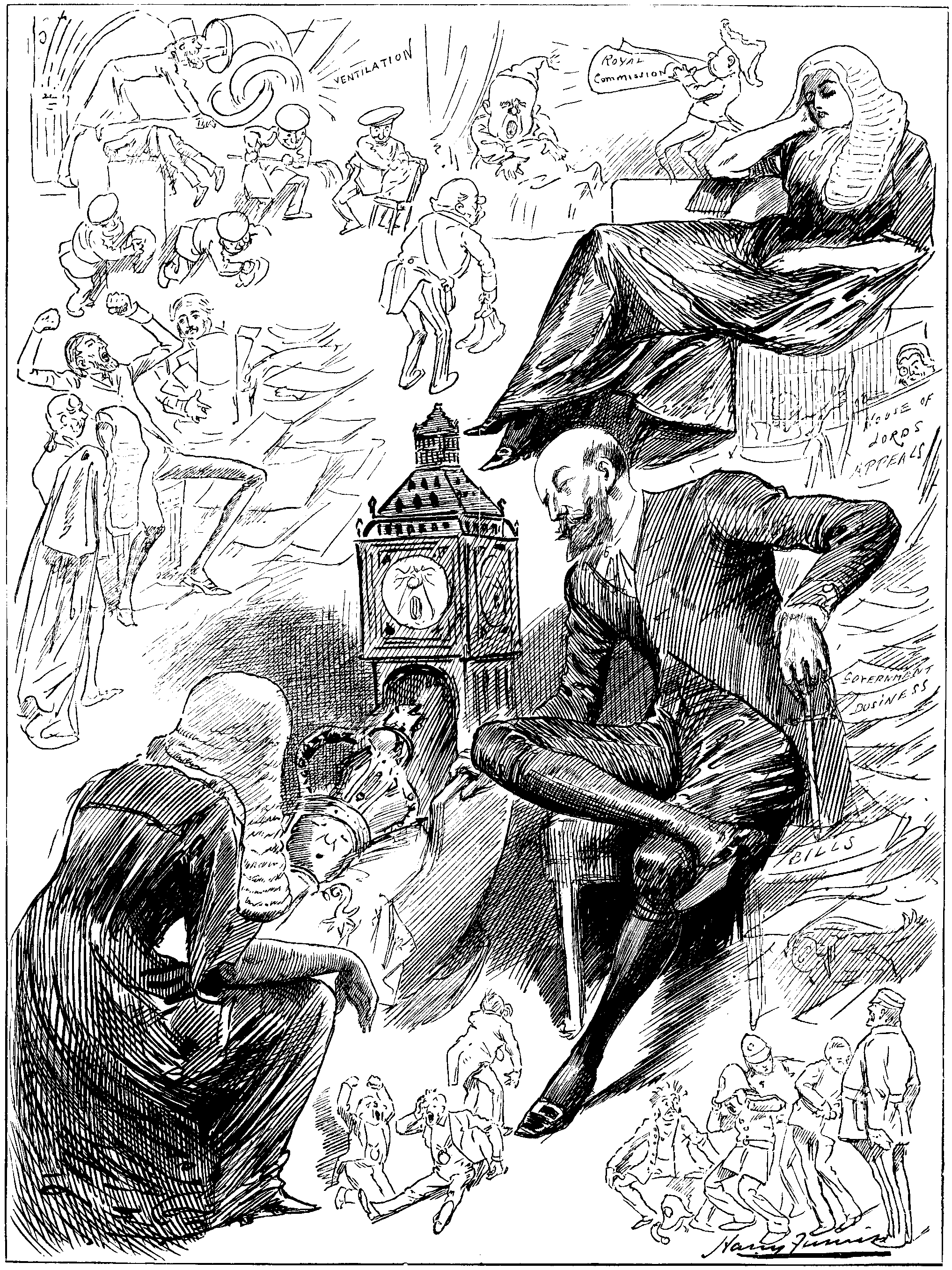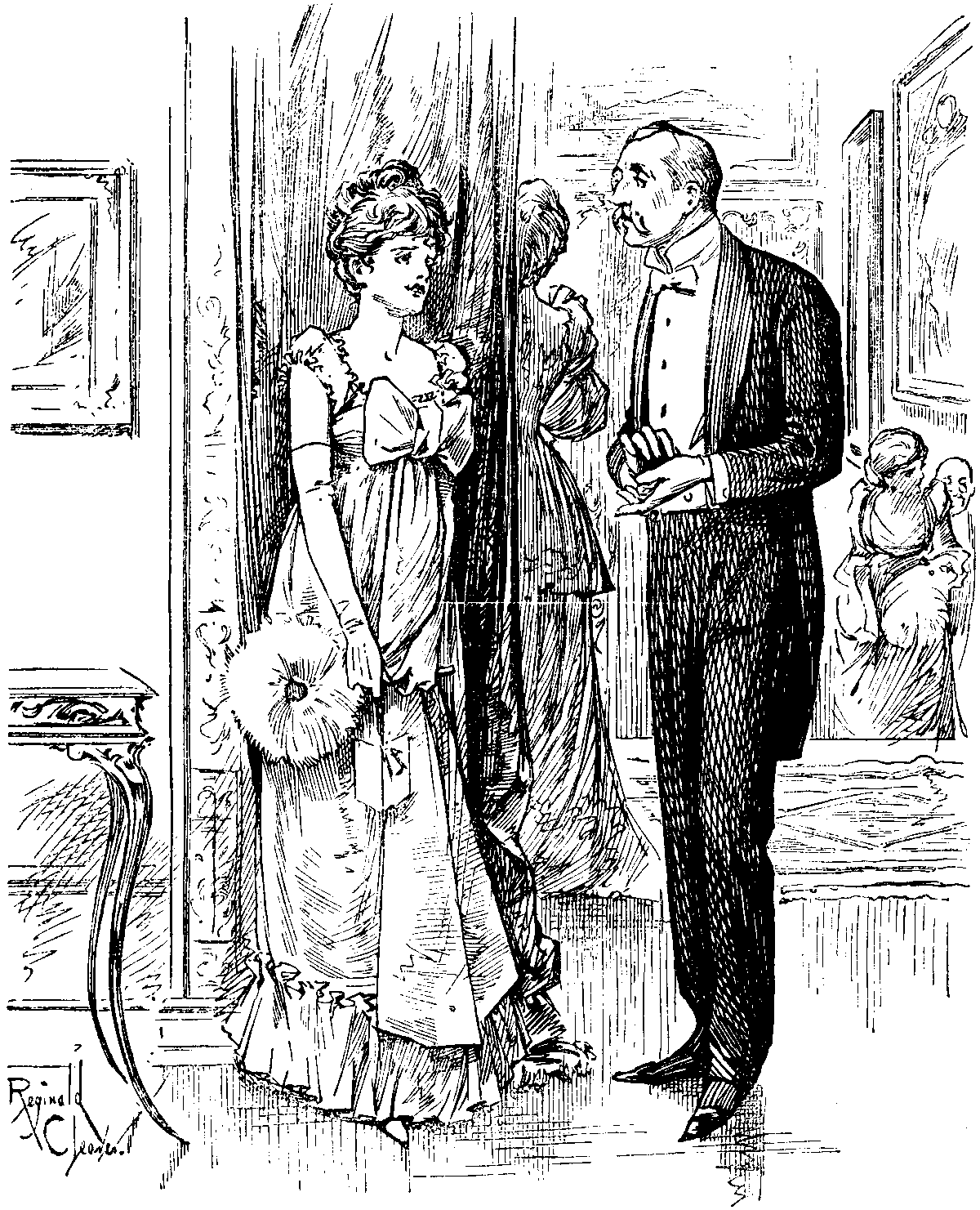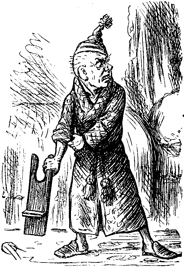 [And, as the old game has it, the consequences were ——!We are able to present our readers with a few notes of a lecture to be given by Professor HUBERT HERKOMER, R.A. (by the kind permission of AUTHOR PINERO, Esq.), to all managers, actors, actresses, scene-painters, authors, composers, musicians, costumiers, and wig-makers who will honour him with their attention. On this occasion the Professor will (among other things) explain, by the aid of a Magic Lantern (an entirely new invention recently discovered by Professor H.H.) how to enlighten the stage darkness generally. The Professor will also combat the erroneous impression derived from the dark ages of SHAKSPEARE's time, that the Moon, or the Man in it,—probably a lime-lighterman,—ought servilely to follow the movements, in order to throw light upon them, of the Principal Performer. The Professor will observe—"Such a course, on the part of the Direction of the Moon, can only be considered beneficial to Art, when it is directed against 'The Star System.' As each theatrical Star has its own particular brilliancy, why lug in the Moon? SHAKSPEARE, no doubt, had the Stage Moon in full view when he makes Juliet roundly exclaim, 'Oh, swear not by the Moon, the inconstant Moon!' as, of course, a Moon bound to illuminate the business of any one actor must follow him about, and so, though 'constant' to him individually, would be open to a general charge of inconstancy from the spectators in front. Such a course for the Moon to take is, as some of the better instructed among you may possibly be aware, quite unwarranted by the lunar laws of Nature, &c., &c."