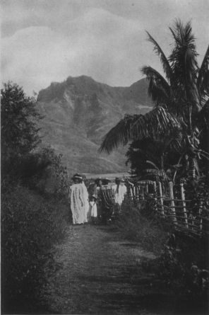 By the white coral wall of Papeite beach the schooner Fetia Taiao (Morning Star) lay ready to put to sea. Beneath the skyward-sweeping green heights of Tahiti the narrow shore was a mass of colored gowns, dark faces, slender waving arms. All Papeite, flower-crowned and weeping, was gathered beside the blue lagoon.