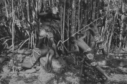 Enacting a human sacrifice of the Marquesans
