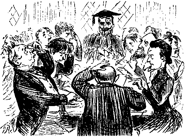 Friday 12·15 A.M.—All this in Committee of Supply, which came to end at midnight. Then Report of Supply brought on; uproar renewed; Vote for Irish Teachers' Pension Fund under discussion. Irish Members mysteriously disappeared; SEXTON, understood to have ready prodigious speech on the subject, nowhere to be found. "JOHN O'CONNOR," NOLAN hoarsely whispered, "you have the longest legs in the Party; go and look up the bhoys, and I'll talk."