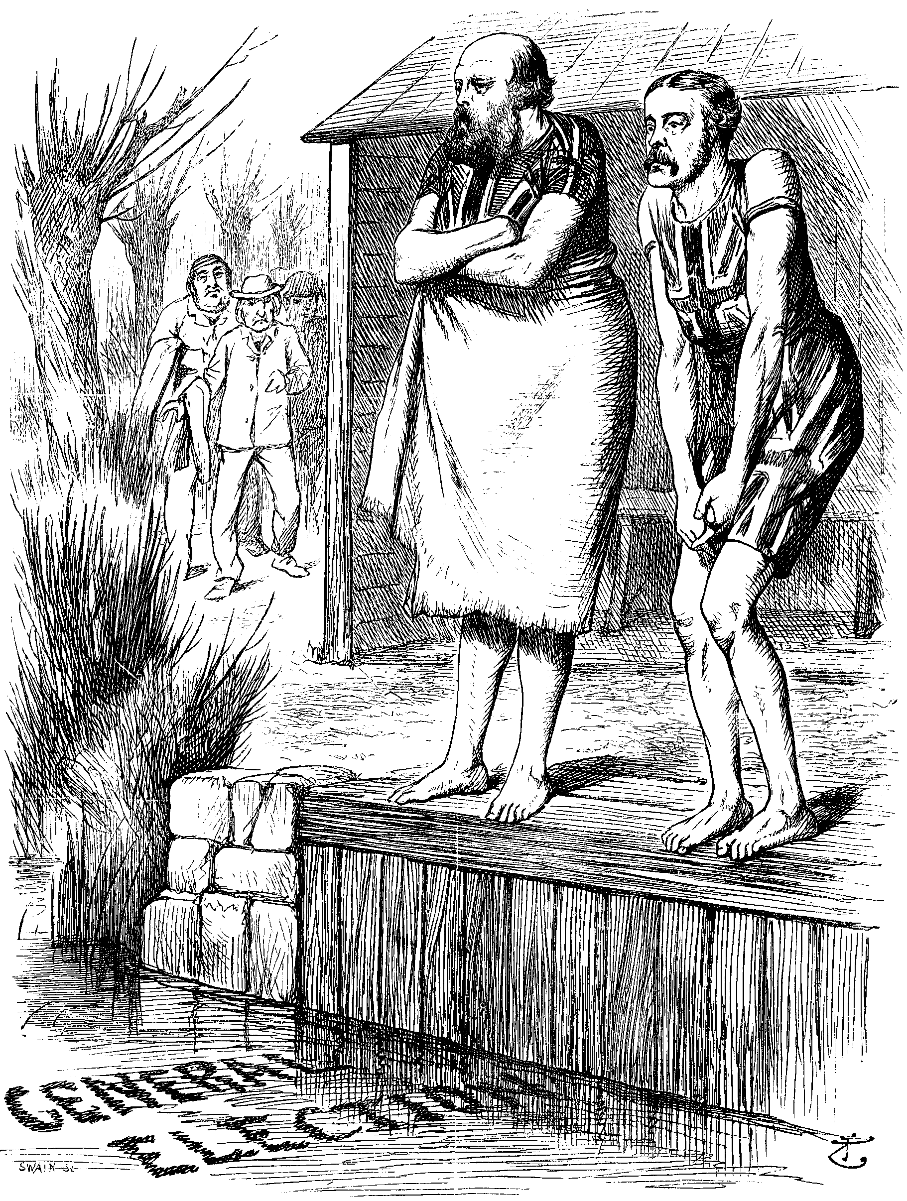 Second Ditto. By Jove! I shouldn't wonder if they tried. Don't you think, ARTHUR, (valiantly) it would be better, more manly, and more politic, perchance, to plunge in than to be pushed?