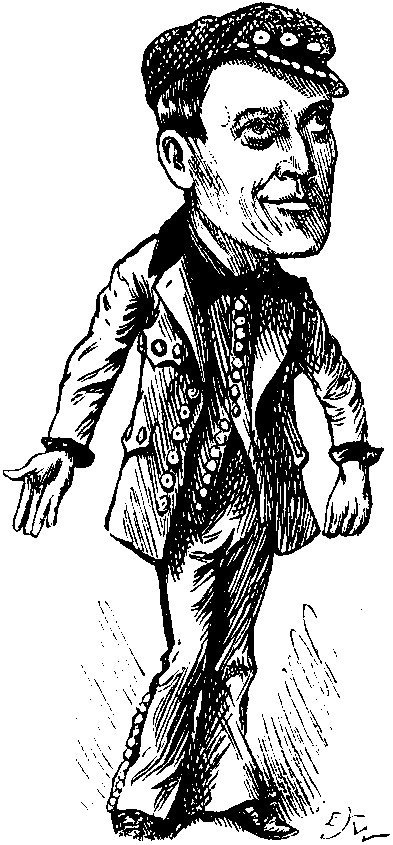 "What's in an 'at without an 'ed?" DISTAFFINA DE COCKAIGNE was wont to inquire, and "what's an 'all" (of Music like the London Pavilion) "without a NED" in the shape of Mr. EDWARD SWANBOROUGH, the all-knowing yet ever-green Acting Manager at this place of entertainment, who possessing the secret of perpetual youth in all the glory of ever-resplendent hat and ever-dazzling shirt-front, ushers us into the Stalls in time to hear the best part of an excellent all-round show. It is sad to think that, probably as we were disputing with the cabman, the celebrated Miss BOOM-TE-RÉ-SA, alias LOTTIE COLLINS, Serio-Comic and Dancer, was "booming" and "teraying" before the eyes of a delighted audience. Strange that we should not yet have heard the great original. But as she is not (so to adapt a line from the "Last Rose of Summer") "left booming alone," we have not escaped hearing several of her male and female imitators who, by her kind permission and that of her publishers, trade on her present exceptional success. However, when we entered the Stalls, Miss BOOM-TE-RÉ-SA had disappeared, and somebody with a song had "intervened"—a mode of proceeding not necessarily limited to the Queen's Proctor—before the object of our visit walked on to the stage, and when he did come a pretty object he was too, seeing that it was Mr. ALBERT CHEVALIER, the unequalled and inimitable Comedian of the Costermongers. He is a thorough artist in this particular line, and no indifferent one in others; but his Coster ballads are artistically first rate. The fashion of calling English singers by Italian names is on the wane, otherwise Mr. ALBERT CHEVALIER, of French extraction, would find an excellent Italian alias, closely associated with the operatic and musical professions, and most appropriate to the line he has adopted, in the name of "SIGNOR COSTA." The melody of Mr. CHEVALIER's "Coster's Serenade," of which, I rather think, he is the composer as well as librettist, is as charming as it is strikingly original. After the Chevalier sans peur et sans approche had retired, clever and sprightly Miss JENNY HILL gave as a taste of lodging-house-keeperism, following whom came the Two MACS belabouring each other in their old hopelessly idiotic, but always utterly irresistible style; and then Lieutenant W. COLE—King COLE we "crowned him long ago"—gave his ventriloquial entertainment, who, with his troop of talking dolls, should have his address at Dollis Hill. There were many "turns" yet to follow when we left, at a comparatively early hour; "and so," to quote old PEPYS, "home with much content."