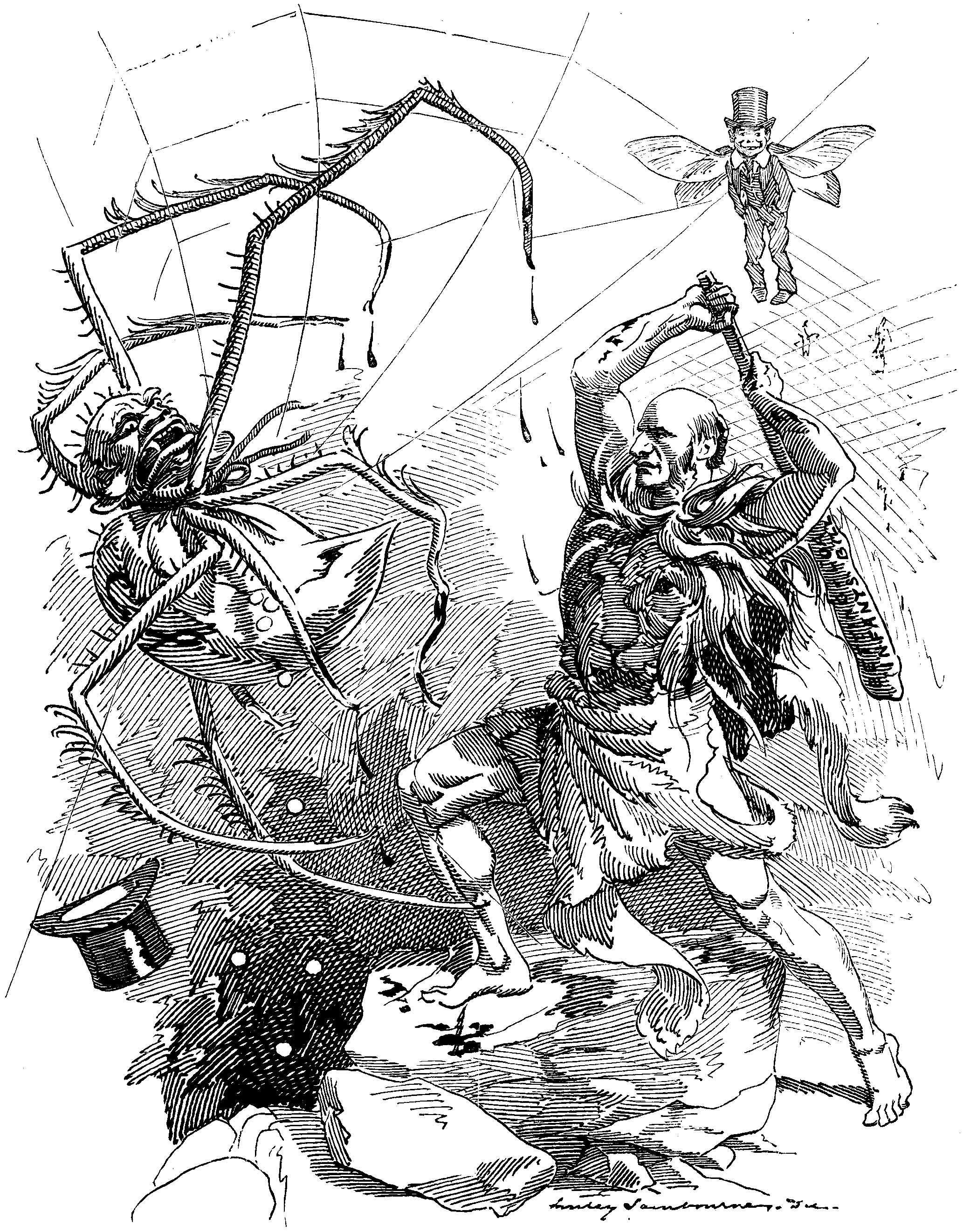 Gloom dissipated two hours later by appearance of BOBBY SPENCER at the Table. BOBBY doesn't often witch the House with oratory. Content with important though to outsiders obscure position he occupies in Party administration. His is the hand that pulls the strings to which Liberal Party dance. SCHNADHORST gets some credit, but everybody knows BOBBY's the man. To see these two political strategists in conference is sufficient to reassure the Liberal Party on the possible issues of the General Election.