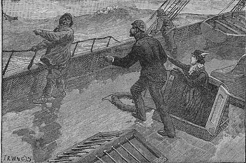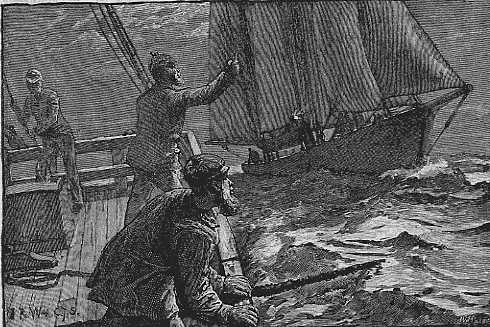 Still the series of moving accidents went on. A smack hove up under the stern of the schooner, and our skipper said gravely, "That Brixham man's mad to try sailing that vessel. If one puff comes any harder than the last, he'll be hove down." Then the skipper turned to look forward, and Ferrier followed him. A low, strangled moan made them both start and look down the companion. Marion Dearsley, pointing with convulsively rigid arm, exclaimed, "The vessel—oh, the poor men!"