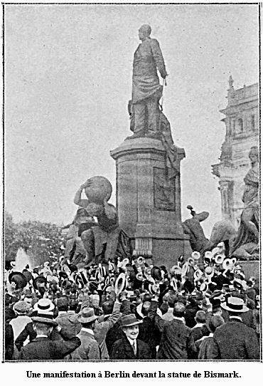 2° L'engagement de réprimer toute action dirigée contre l'Autriche-Hongrie, et d'abord de supprimer les publications excitant au mépris ou à la haine de la double monarchie, et de dissoudre l'association nationaliste, dite Narodna Obrana, puis de révoquer les officiers et fonctionnaires coupables, dans le passé ou dans l'avenir, de s'être livrés à des manifestations anti-autrichiennes; 3° L'engagement d'ouvrir une enquête judiciaire contre les auteurs ou les partisans du «complot du 28 juin» (les meurtres de Sarajevo). Enfin, le gouvernement impérial et royal se réservait de fournir lui-même les noms des coupables à frapper et exigeait la présence dans la commission d'enquête judiciaire sur le complot d'un certain nombre de ses fonctionnaires. Il laissait au gouvernement serbe quarante-huit heures pour se déterminer,—jusqu'au samedi 25, à 6 heures du soir. Ce fut un coup de foudre, d'autant plus inquiétant qu'il se produisait au milieu d'un concours de circonstances tel, que tout était pour faire croire à un coup savamment préparé: le président de la République, à l'heure où cet ultimatum fut rendu public, venait de quitter le tsar et n'en eut connaissance qu'en pleine mer. De plus, une grève importante, et de nature à paralyser une mobilisation éventuelle, sévissait en Russie. Enfin, on venait d'apprendre l'échec du suprême effort tenté à Londres pour résoudre sans troubles la question de l'Ulster.