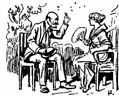 —Il est sourd, votre oncle? —Oui... mais pas tant que ça... hier encore un coup de tonnerre a ébranlé la maison... il m'a répondu «Dieu vous bénisse!» |