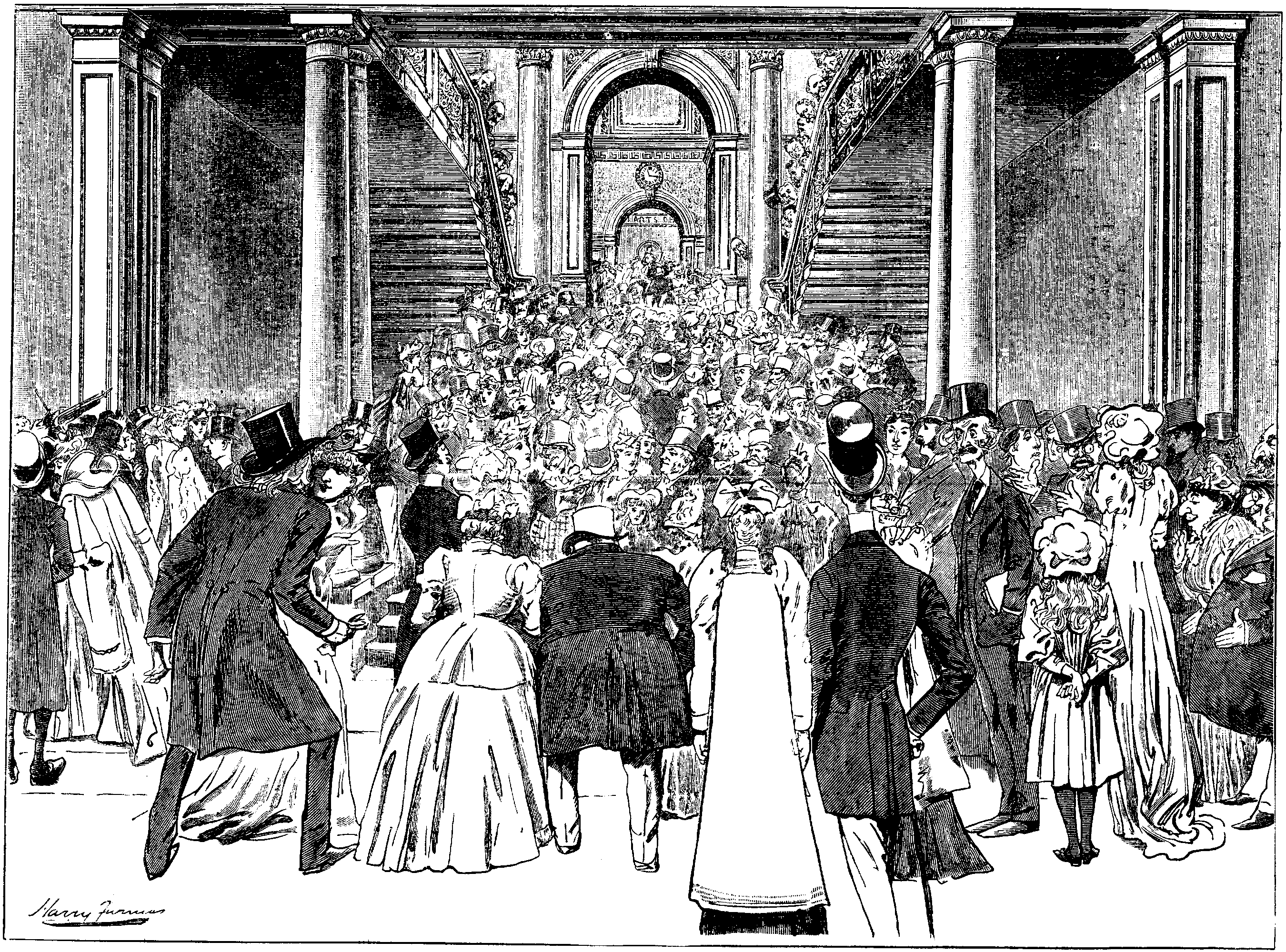 SCENE—The Exterior of the Telephone Music Room in the Egyptian Vestibule. The time is about eight. A placard announces, "Manchester Theatre now on"; inside the wickets a small crowd is waiting for the door to be opened. A Cautious Man comes up to the turnstile with the air of a fox examining a trap.