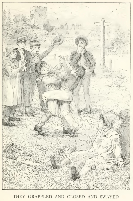 Benjy himself was come of a family distinguished in the Vale for their prowess in all athletic games. Some half-dozen of his brothers and kinsmen had gone to the wars, of whom only one had survived to come home, with a small pension, and three bullets in different parts of his body; he had shared Benjy's cottage till his death, and had left him his old dragoon's sword and pistol, which hung over the mantelpiece, flanked by a pair of heavy single-sticks with which Benjy himself had won renown long ago as an old gamester, against the picked men of Wiltshire and Somersetshire, in many a good bout at the revels and pastimes of the country-side. For he had been a famous back-swordman in his young days, and a good wrestler at elbow and collar.