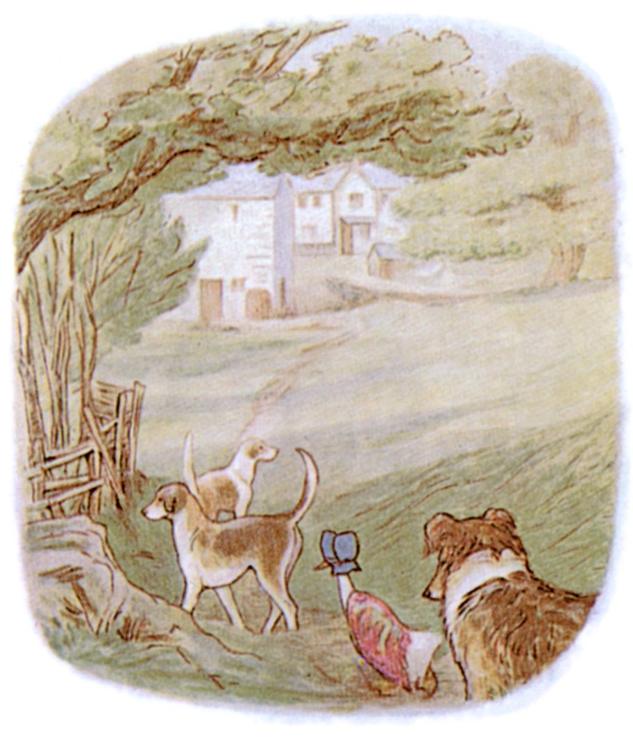 The collie-dog Kep met her coming out, "What are you doing with those onions? Where do you go every afternoon by yourself, Jemima Puddle-duck?"
