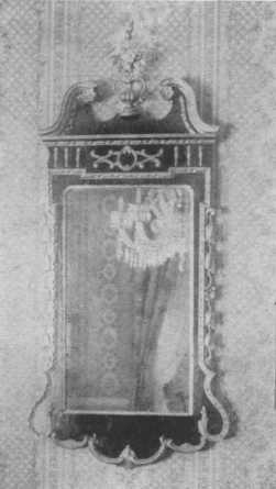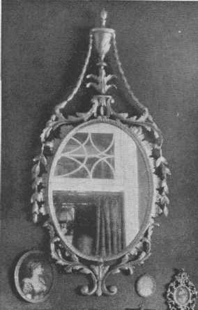 The modern style of mirror is brought into harmony with the eighteenth century dressing-table by means of carving.