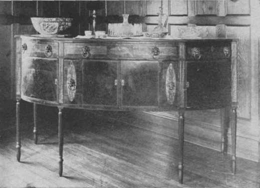 The handles used were of various kinds, the favorite being the drop from a round or star-shaped boss. The furniture was beautifully polished but did not have a bright gloss.