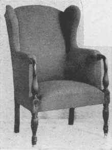 The English Renaissance is often called the age of oak, and all through the long years of its slow development this oaken bond, so to speak, gave it a certain unity which makes it possible to use much of the furniture of its different divisions together. There are many fine reproductions made of the Tudor and Elizabethan times, but from the early Stuart days, the time of James I onward, good reproductions become more plentiful. This does not mean, however, that one is safe in buying anything called Jacobean or Queen Anne or Georgian. One must still be careful and go armed with as much knowledge as possible. For instance, do not buy any Tudor, Elizabethan, Jacobean, or Charles II furniture made of mahogany or with a high polish. Do not buy any with finicky or delicate brass handles. This may seem an unnecessary warning, but I have seen dainty oval Hepplewhite handles used on a heavy Jacobean chest. This does not happen often, but a word to the wise—. The handles which were used were some times of iron and sometimes of brass, often with a little design etched on them, and the drop handles were either oblong or round rings, or pear- or tear-shaped drops with either a round or oblong plate. H-hinges of iron were used. Chairs of the time of James I, which are much like those of Louis XIII in France, were square and strong with plain or spiral turned legs, and stretchers, and had seats and half backs covered with needlework, leather, velvet, or damask. They would make very comfortable dining chairs and would harmonize with sturdy gate-legged tables, or the long narrow tables which show the influence of Elizabeth's time in the carved drum or acorn-like bulbs of the legs. A court-cupboard would make a beautiful sideboard, and one of the long tables spoken of above would make an appropriate serving-table. Carved chests, and screens covered with leather or needlework, may be used in rooms of this kind, and for modern comfort one may add stuffed chairs and sofas if the proper materials for coverings are chosen. There are some very fine copies made of old needlework of different kinds and also of damasks and other stuffs. One must have the right background for all this, oak paneled walls and tapestry and plain or figured velvet or damask hangings. There are also some finely designed heavy linens which are correct to use.