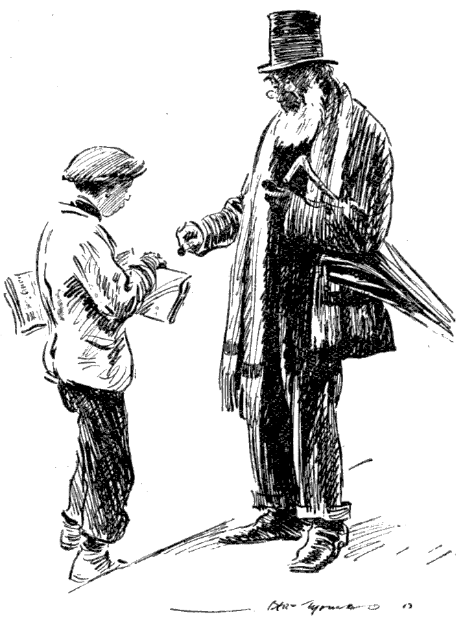 McTavish (purchasing paper of posterless newsboy). "AWEEL, IT'S A 'PIG IN A POKE,' BUT AH'LL RISK IT."