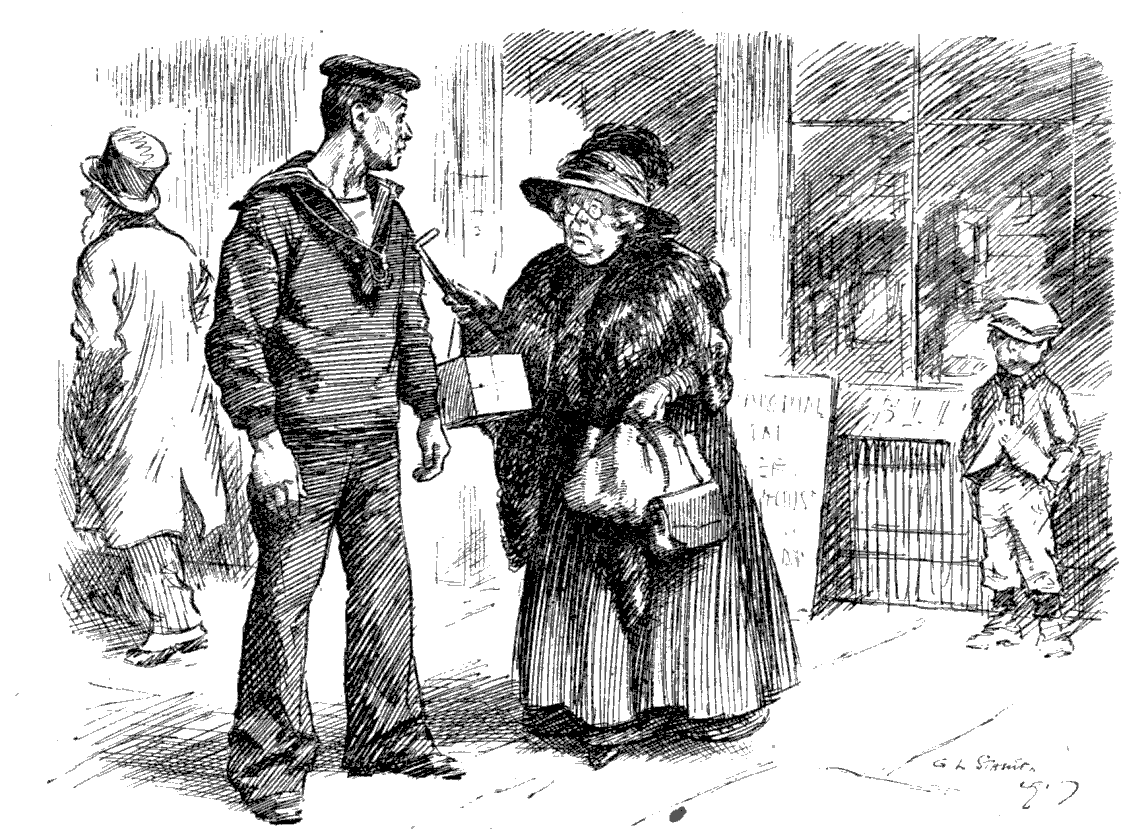 "Bless their hearts, that I will," she said; "it shall never be said I turned a soldier from my door. Nobody knows better than I do what soldiers is in an 'ouse. Always merry and bright and ready to put their 'ands to anything when a poor woman's work's never done and she's delicate and liable to the sick-'eadache in the mornin's. There's the week's clothes to go through the wringer, but I know what soldiers is for a wringer; they can't leave it alone. And if I 'appens to overlay meself I know there's no cause to worry about Grandfer's cup o' tea, nor yet Bobby and Tom and Albert gettin' off to school tidy. Like as not they'll do me more credit than if I washed 'em meself; there's nobody like a soldier for puttin' a polish on children."