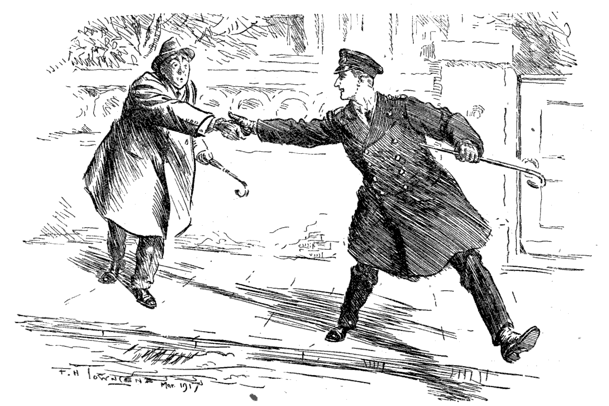 So said McGregor, and when I besought him to come to the point, he said he'd dealt with it, and if I had any sympathy left for HINDENBURG or his line I was no better than a slave-driving, sit-at-home-and-push-others-over-the-parapet Prussian militarist myself. As for the map, it didn't matter in the least where HINDENBURG took his old line to, since wherever in Europe it endeavoured to conceal itself his own little line would scent it out and follow it. And if the HINDENBURG line was more than two hundred miles long and the Rrobert James McGrregor line less than two hundred yards, still it didn't matter; for when a Scot takes a dislike to somebody, that somebody's number is up.
