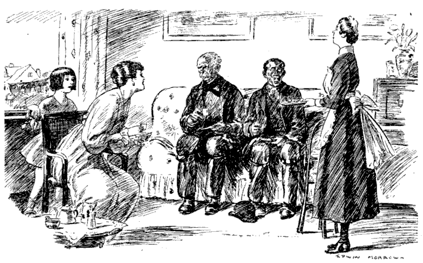 Mrs. Sweedle overlaid herself the very first mornin', and sent word by Albert if we would be so kind as make her a cup o' tea when we was makin' Grandfer's it might save her a doctor; and the wood for the fire was out in the yard, and she knew, bein' soldiers, we should chop her a barrer-load while we was about it; and when she crawled downstairs presently the breakfast things would be washed and put away, as was the 'abit of soldiers, and very likely the pertaters peeled for dinner.