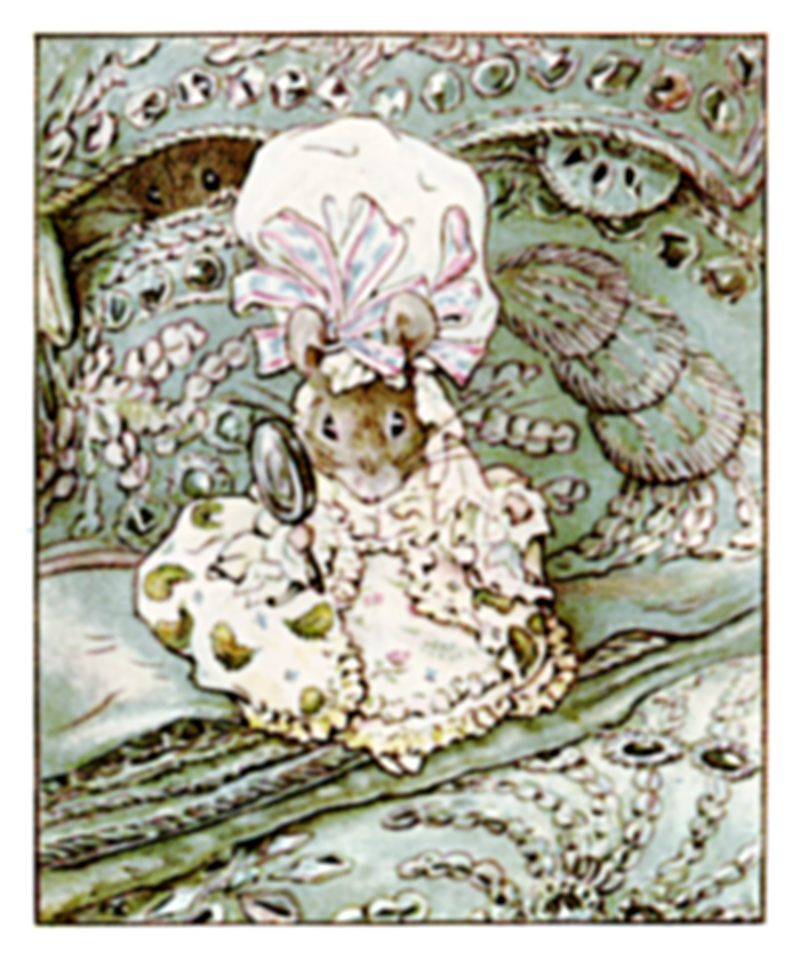 The little mice came out again, and listened to the tailor; they took notice of the pattern of that wonderful coat. They whispered to one another about the taffeta lining, and about little mouse tippets.