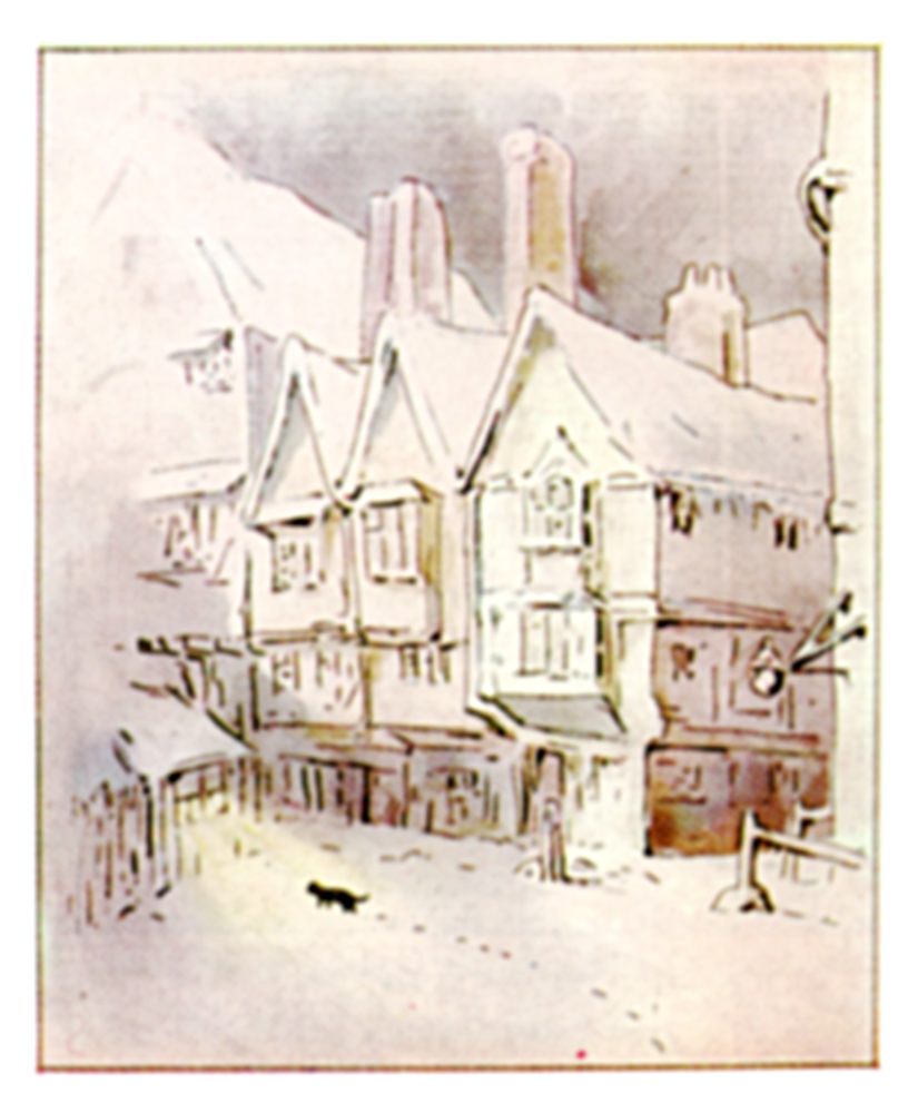 But the tailor came out of his shop, and shuffled home through the snow. He lived quite near by in College Court, next the doorway to College Green; and although it was not a big house, the tailor was so poor he only rented the kitchen.
