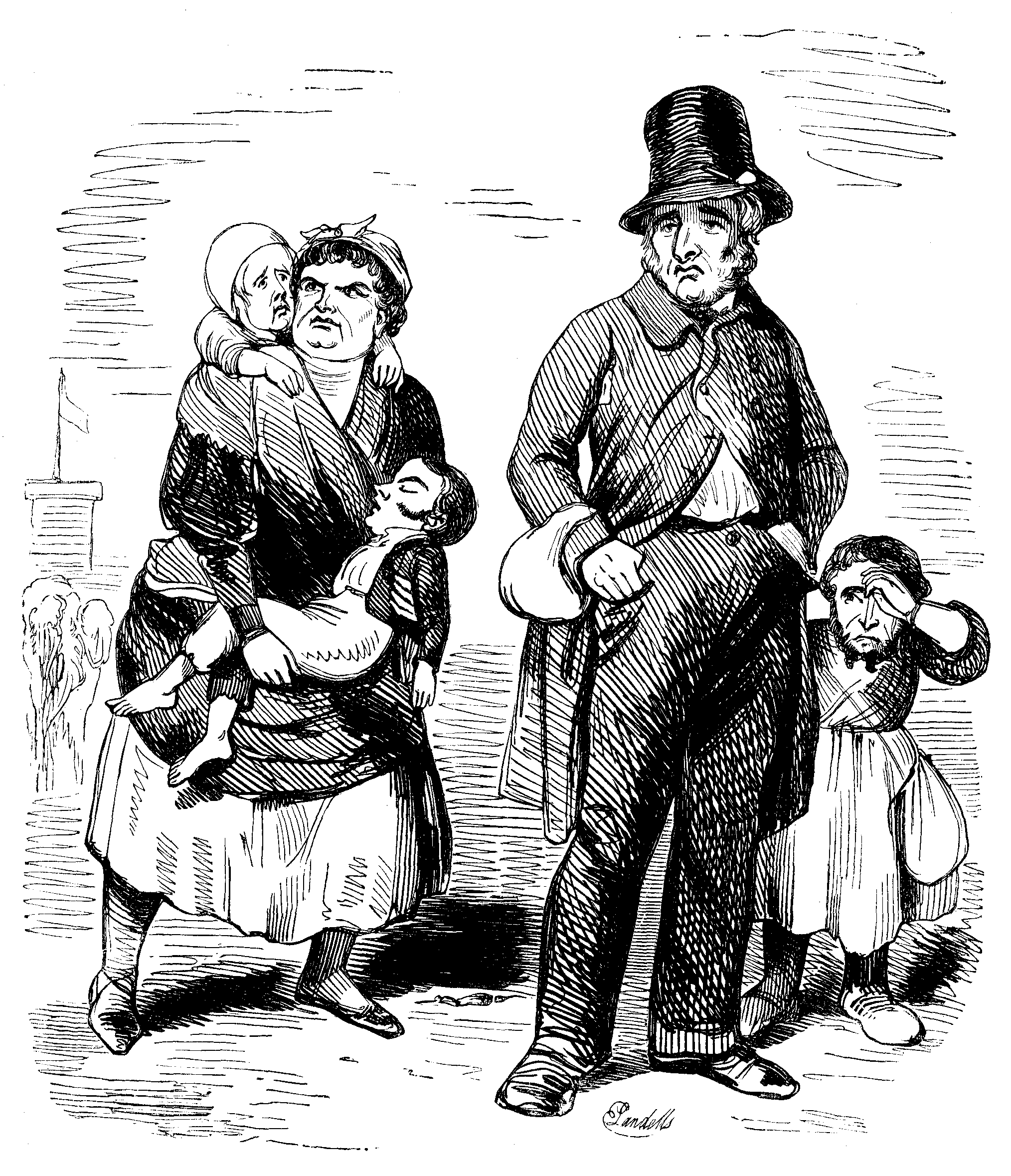 It will be seen, by a glance at the above table, that the three great divisions of society, namely, High Life, Low Life, and Middle Life, are subdivided, or more properly, sub-classed, into the Superior, Transition, and Metamorphic classes. Lower still than these in the social scale is the Primitive Formation—which may be described as the basis and support of all the other classes. The individuals comprising it may be distinguished by their ragged surface, and shocking bad hats; they effervesce strongly with gin or Irish whiskey. This class comprehends the St. Giles’s Group—(which is the lowest of all the others, and is found only in the great London basin)—and that portion of the Whitechapel group whose individuals wear Bluchers and ride in pleasure ‘wans’ to Richmond on Sundays. In man’s economy the St. Giles’s Group are exceedingly important, being usually employed in the erection of buildings, where their great durability and hod-bearing qualities are conspicuous. Next in order is the Metamorphic class—so called, because of the singular metamorphoses that once a week takes place amongst its individuals; their common every-day appearance, which approaches nearly to that of the St. Giles’s Group, being changed, on Sundays, to a variegated-coloured surface, with bright buttons and a shining “four-and-nine”—goss. This class includes the upper portion of the Whitechapel Group, and the two lower strata of the Clapham Group. The Whitechapel Group is the most elevated layer of the inferior series. The Shabby Genteel stratum occupies a wide extent on the Surrey side of the water—it is part of the Clapham Group, and is found in large quantities in the neighbourhood of Kennington, Vauxhall, and the Old Kent-road. A large vein of it is also to be met with at Mile-end and Chelsea. It is the lowest of the secondary formation. This stratum is characterised by its fossil remains—a great variety of miscellaneous articles—such as watches, rings, and silk waistcoats and snuff-boxes being found firmly imbedded in what are technically termed avuncular depositories. The deposition of these matters has been referred by the curious to various causes; the most general supposition being, a peremptory demand for rent, or the like, on some particular occasion, when they were carried either by the owner, his wife, or daughter, from their original to their present position, and left amongst an accumulation of “popped” articles from various districts. The chief evidence on this point is not derived from the fossils themselves, but from their duplicates, which afford the most satisfactory proof of the period at which they were deposited. Articles which appear originally to have belonged to the neighbourhood of Belgrave-square have been frequently found in the depositories of the district between Bethnal-green and Spitalfields. By what social deluge they could have been conveyed to such a distance, is a question that has long puzzled the ablest geologists. Immediately above the “shabby genteel” stratum are found the people who “keep a shop concern, but no shay;” it is the uppermost layer of the Metamorphic Class, and, in some instances, may be detected mingling with the supra-genteel Clapham Group. The “shop and no shay” stratum forms a considerable portion of the London basin. It is characterised by its coarseness of texture, and a conglomeration of the parts of speech. Its animal remains usually consist of retired licensed victuallers and obese tallow-chandlers, who are generally found in beds of soft formation, separated from superincumbent layers of Marseilles quilts, by interposing strata of thick double Witneys.