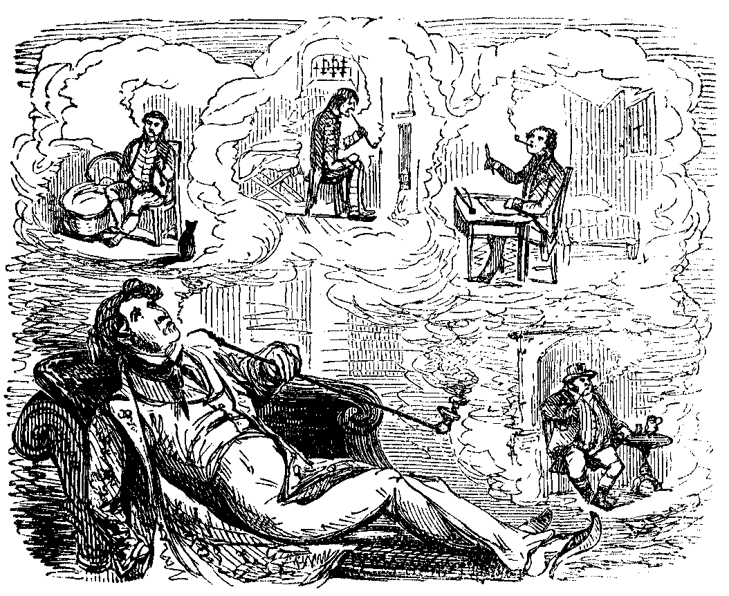 I was introduced by my new acquaintance without much ceremony, and was pleased to see that little was expected. “We meet here thrice a week,” said Bonus, “just to wile away an hour or two after the worry and fatigue of business. Most of us have been acquainted with each other since boyhood—and we have some curious characters amongst us; and should you wish to enrol your name, you have only to prove your qualification for this (holding up his pipe), and we shall be happy to recognise you as a ‘Puff.’”