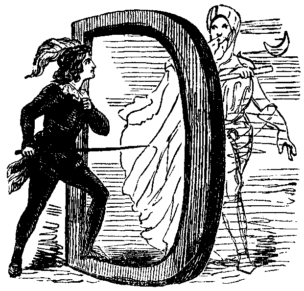 Having brought the whole family to a state in which he supposes they will refuse nothing, Gammon visits Miss Aubrey, and, in the most handsome manner, offers her—notwithstanding the disparity in their circumstances—his hand, heart, and fortune. More than that, he promises to restore the estate of Yatton to its late possessor. To his astonishment the lady rejects him; and, he showing what the bills call the “cloven foot,” Miss Aubrey orders him to be shown out. Meantime, Mr. Tittlebat Titmouse, having been returned M.P. for Yatton, has made a great noise in house, not by his oratorical powers, but by his proficient imitations of cock-crowing and donkey-braying.