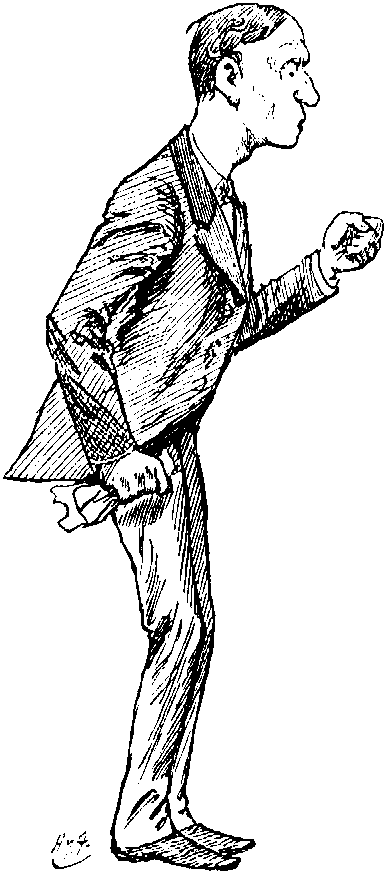 A fine speech, equal to the magnificent audience. Even DON'T KEIR-HARDIE took off his cap to listen. JOSEPH never better with his quick sharp thrust, his lunging blow, and his apt tripping up. As usual, best where speech broken in upon with rude interruption. Note the incident when launched upon his peroration, carefully prepared and perilously adventured upon. House not passionately fond of perorations. Will suffer them only from Mr. G. and one or two others. CHAMBERLAIN rarely rises to peroration point. To-night a great occasion. Solemn enough even for peroration. Rising with its swelling tide, he came to ask "the wisest and the most sensible among you to consider the situation." Standing at the moment with face turned to Liberals above Gangway; from Irish camp behind his back rose shouts of ironical cheers and noisy laughter, "Boo-oo!" CHAMBERLAIN stopped perforce, and with scornful gesture of thumb over his shoulder at mob behind, said, "Yes, to the others I do not speak;" then went on and finished his sentence.