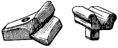 The oldest sandstone quarries in America are those at Portland, Conn. It was from these quarries that great quantities of brownstone were shipped for buildings in New York. The typical "brownstone front" is all built of Portland stone. As the Portland quarries were carried to great depths the thickness of bed increased, as it usually does in quarries. With beds from 10 to 20 ft. deep, all of solid and valuable brownstone, it became a matter of importance that some device should be applied which would shear the stone from its bed without loss of stock and without the necessity of making artificial beds at short distances. A system was adopted and used successfully for a number of years which comprised the drilling of deep holes from 10 to 12 in. in diameter, and charging them with explosives placed in a canister of peculiar shape. The drilling of this hole is so interesting as to warrant a passing notice. The system was similar to that followed with the old fashioned drop drill. The weight of the bit was the force which struck the blow, and this bit was simply raised or lowered by a crank turned by two men at the wheel. The bit resembled a broad ax in shape, in that it was extremely broad, tapering to a sharp point, and convex along the edge.