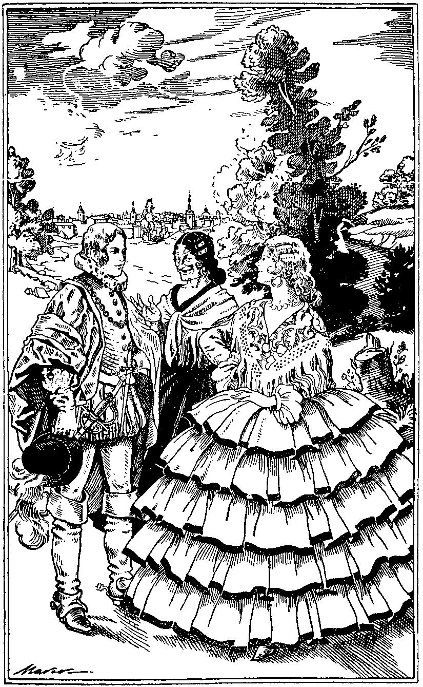 En tanto que el caballero esto decía, le estaba mirando. Preciosa atentamente, y sin duda que no le debieron de parecer mal ni sus razones ni su talle; y volviéndose a la vieja, le dijo: