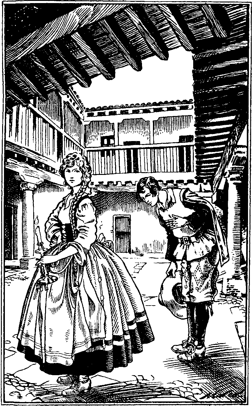 --No, a fe de caballeros--respondió uno--; bien puedes entrar, niña, segura que nadie te tocará a la vira de tu zapato; no, por el hábito que traigo en el pecho.