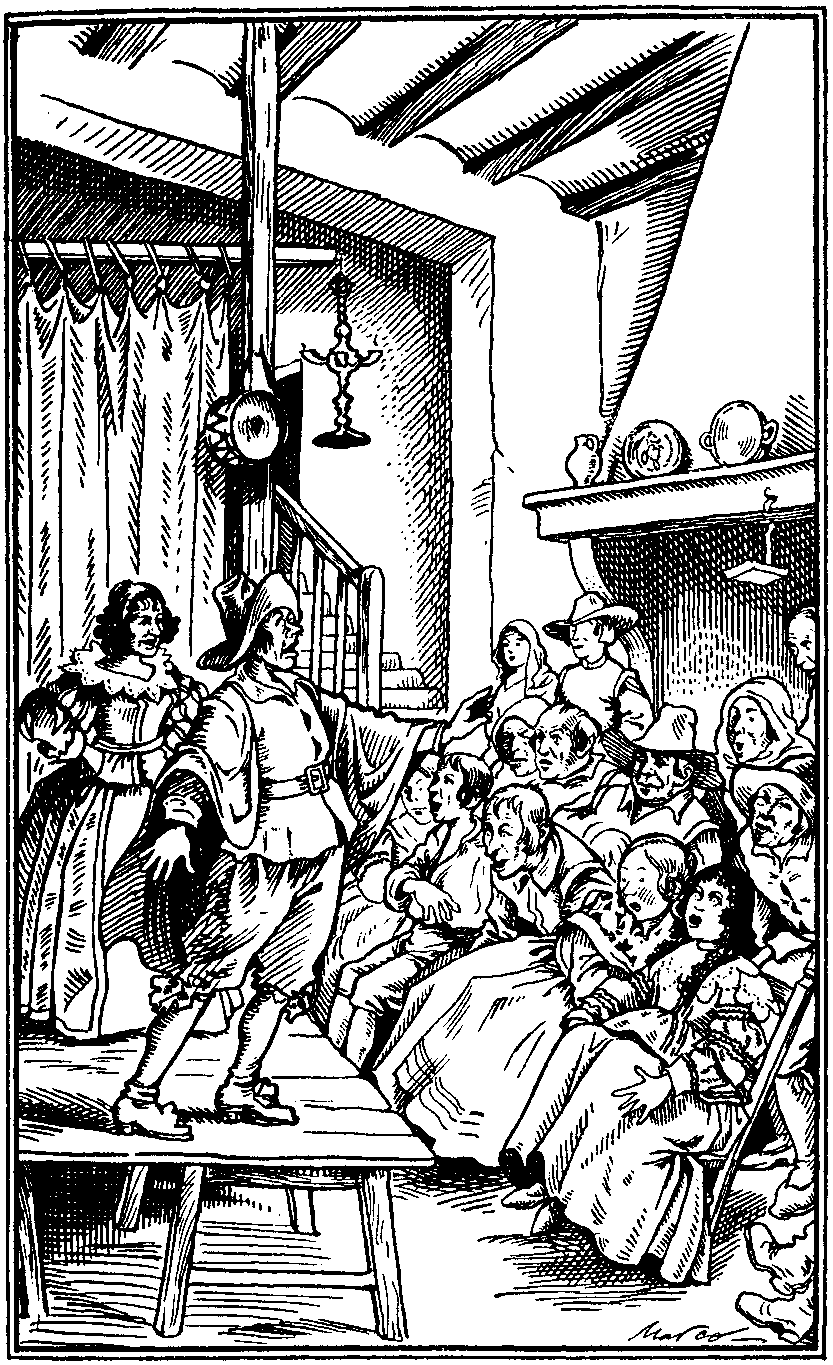 Más de docientas personas estaban mirando el baile y escuchando el canto de las gitanas, y en la fuga dél acertó a pasar por allí uno de los tinientes de la villa, y viendo tanta gente junta, preguntó qué era, y fuéle respondido que estaban escuchando a la Gitanilla hermosa, que cantaba. Llegóse el Tiniente, que era curioso, y escuchó un rato, y por no ir contra su gravedad, no escuchó el romance hasta la fin; y habiéndole parecido por todo extremo bien la Gitanilla, mando a un paje suyo dijese a la gitana vieja que al anochecer fuese a su casa con las gitanillas; que quería que las oyese dona Clara su mujer. Hizolo así el paje, y la vieja dijo que sí iria.