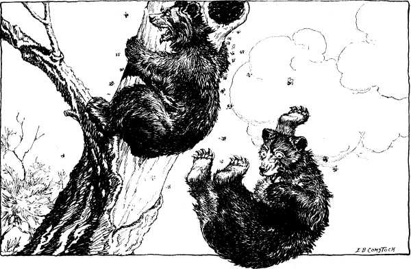 Mee-ko was so scared that he dropped the egg back into the nest and ran along the branch and across to another. From the end of that he dropped down to the fence and scampered along the rails up toward the woods on the side of the mountain.
