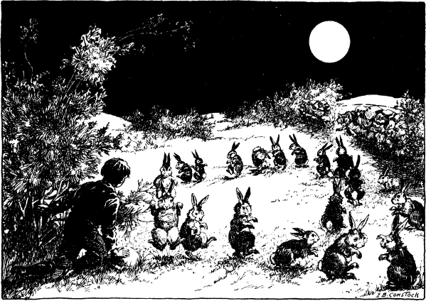"What can have happened to me?" said little Luke aloud. All the creatures in that strange assembly stirred slightly and looked at Wa-poose the big Rabbit. Wa-poose hopped forward a step or two and stood up on his hind legs. His ears were stretched straight up over his head, his paws were crossed in front of him, and he looked very queer.