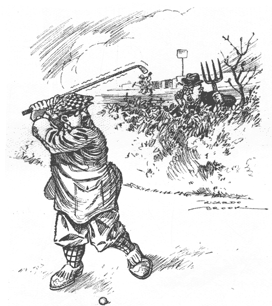 To half a tennis-lawn add two ounces of croquet-mallet and three arches of pergola, and reduce the whole to a fine [pg 327] powder. Drench with still lemonade and boil into a thick paste. Add two hundredweight of dandelions and plantains together with at least three pounds of garden-roller and five yards of wire-netting carefully grilled. Let this be roasted and basted for an hour and then flavoured with vantage. Turn out into a mould, and serve overhand as fast as possible, having first shred into the mixture half a ton of daisies or buttercups, according to taste.