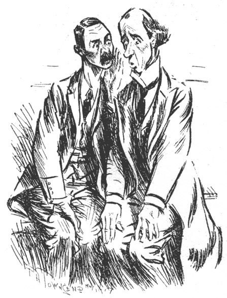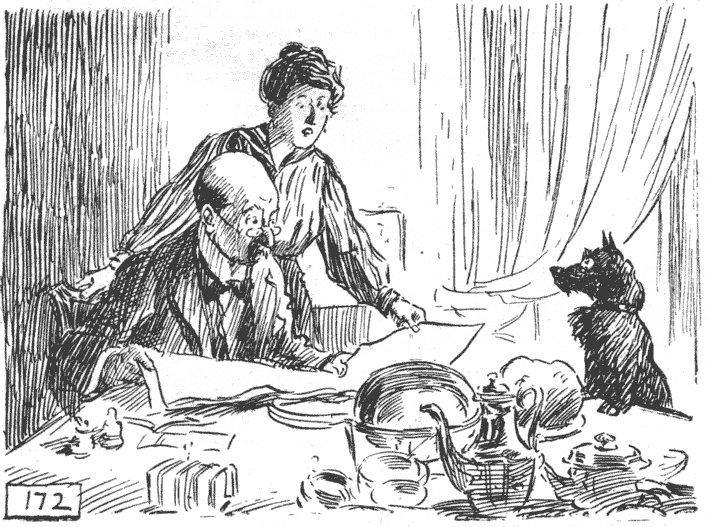 Jimmy was just telling the milkman that he ought to put butter on its feet to make it stay at home, when Jones minimus suddenly remembered. He had put the War Loan in his algebra book and left it in Jimmy's garden. Jimmy says it was a good thing they went back when they did, because when he got home he found his bloodhound, Faithful, busy suspecting a chimney-sweep of being a spy; he had done it to the chimney-sweep's trousers, Jimmy says.