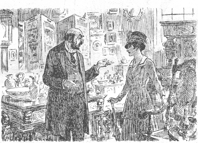 Fake Antique Dealer (off his guard). "I'm sorry, Madam, we have no real antiques in stock. You see we can't get the labour."
