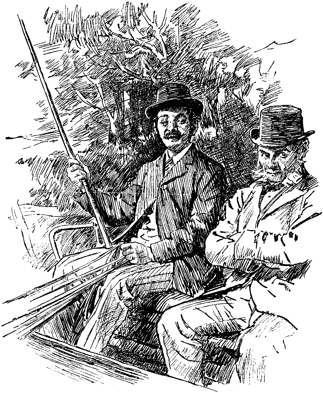 And then Sir JOHN and all his considerate family and acquaintances went to Paris to stay at the Grand Hôtel, which seemed to have been surrendered to them (at convenient times) for their special use. Sir JOHN was accompanied by a most useful villain, who showed the depth of his depravity by wearing a moustache of the deepest dye. So that this depth might be better known, he called himself DEEPWATER.