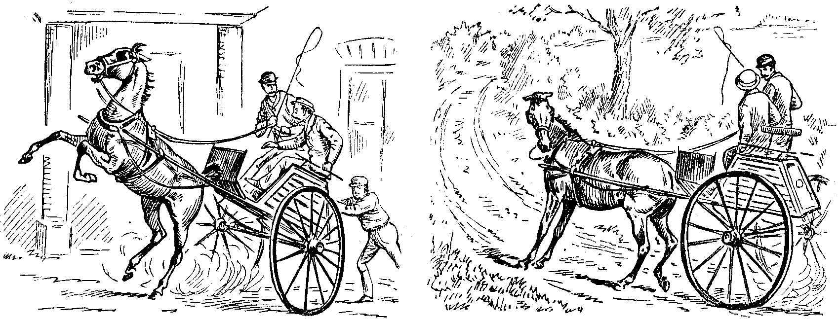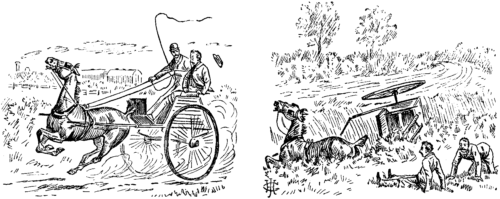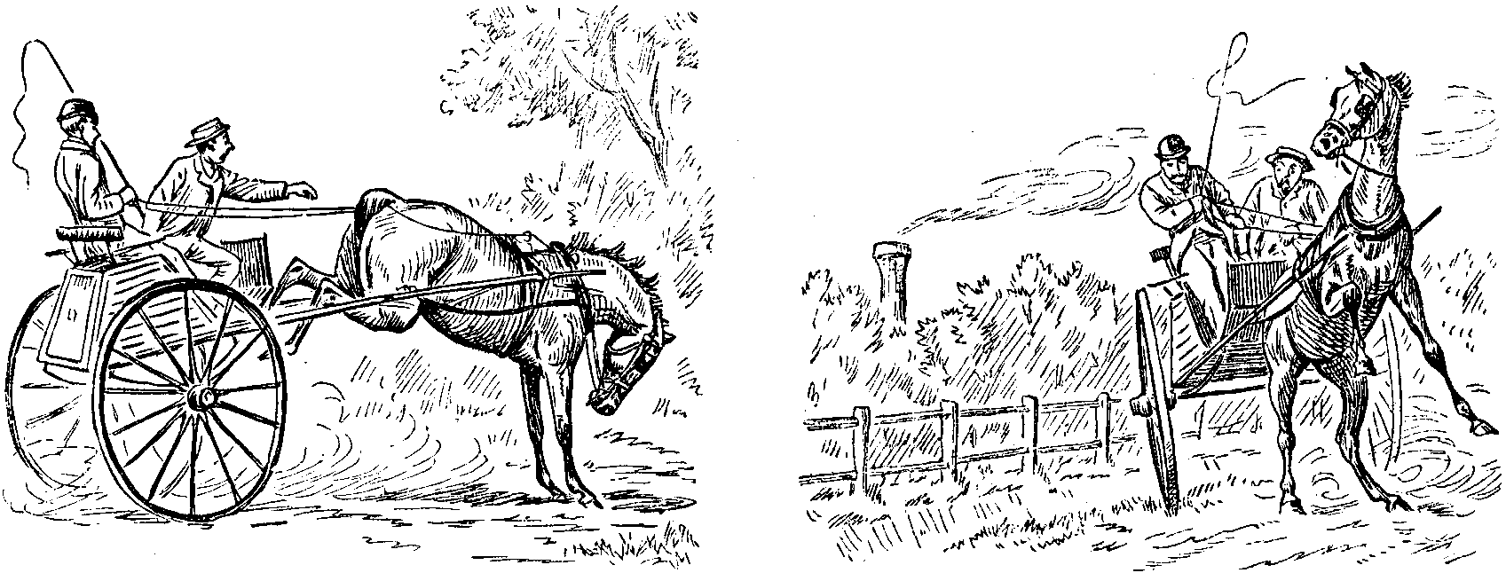 "But," exclaimed her bereaved parent, preparing to mount a horse that was waiting for him on the lawn amongst the flower-beds, "although my heart is breaking, I will show the world I am a true English gentleman by starting off to head the chace!"