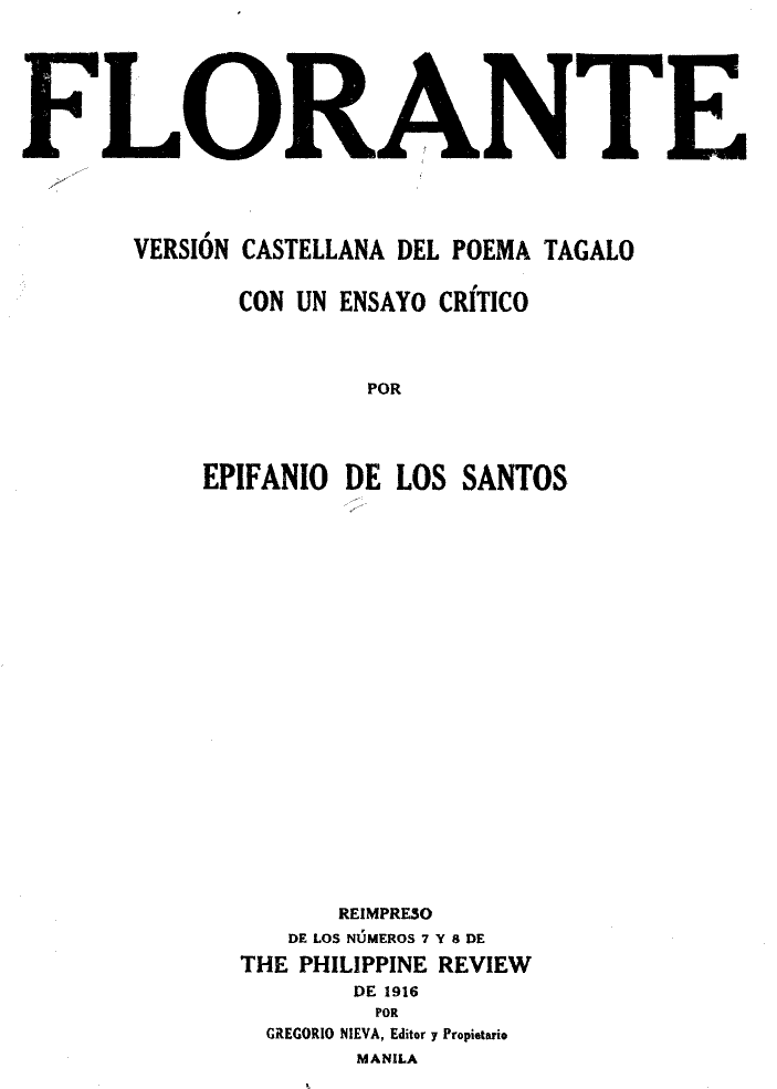 Esta ligera reseña de los monumentos literarios prueba que la evolución de la lengua tagala había sido constante y paralelamente sostenida, con hermanable alianza lingüística, por españoles y filipinos, y que, cuando se dio a la luz el Florante, la lengua estaba, como dijo el Dr. Rizal, en todo su apogeo y magnificencia.
