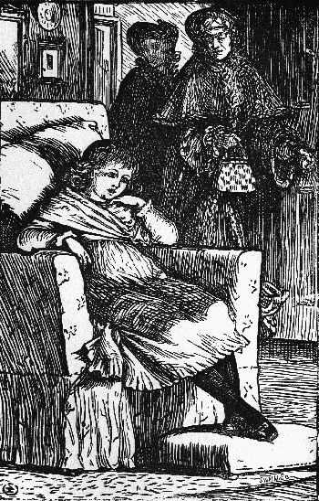 "Here he is, Mr. Crouch!" she exclaimed. "No need now to send to look for him. Oh, Master Phil, how could you stay out so late? And to-night of all nights, just when your—I forgot, I mustn't say. Come in to the parlour at once—and this little girl, who is she?"