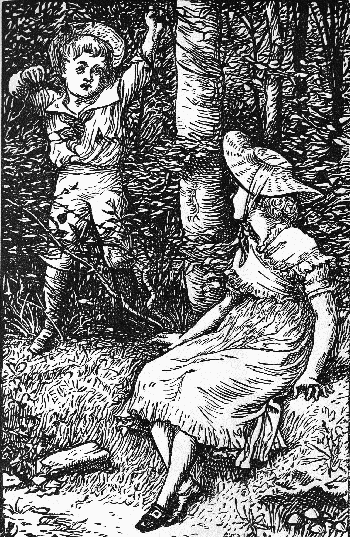 Whether it was the way to fairyland or not, it was not to be wondered at that little Phil thought so. He led Griselda right across the wood to a part where she had never been before. It was pretty rough work part of the way. The children had to fight with brambles and bushes, and here and there to creep through on hands and knees, and Griselda had to remind Phil several times of her promise to his nurse that his clothes should not be the worse for his playing with her, to prevent his scrambling through "anyhow" and leaving bits of his knickerbockers behind him.