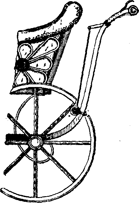 Safety-brake For Children's Carriages.—So many accidents occur with baby-carriages that this ought to be a great comfort to mothers, and a great help to the "little mothers" who mind the babies. Children's carriages are made so light that their weight is very slight, and a puff of wind is often enough to set them in motion; and if they chance to be on an uneven sidewalk they are likely to roll into the road among the vehicles. This simple brake, which keeps the wheels from moving when the handle is released, will render this impossible, and make it safe to leave the carriage, baby and all, without the fear of harm coming to it.