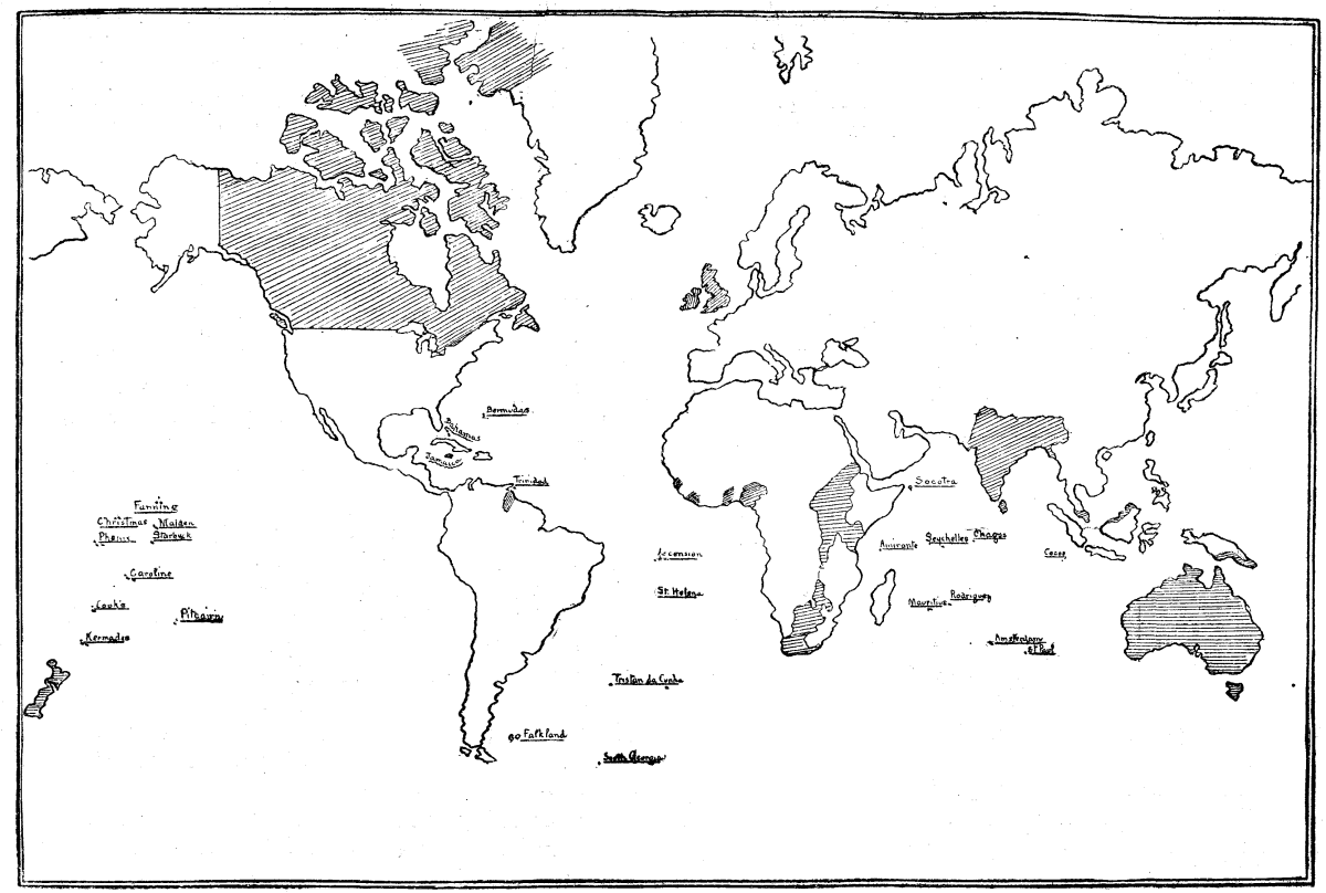 England's importance and wealth lie in her colonies. She is but a "right little, tight little island" of herself; but when regarded from the standpoint of her possessions, her territory covers about one-sixth of the land surface of the globe (see map, page 1189). Her possessions lie north, south, east, and west, till it is rightly said that "the sun never sets on England's glory."