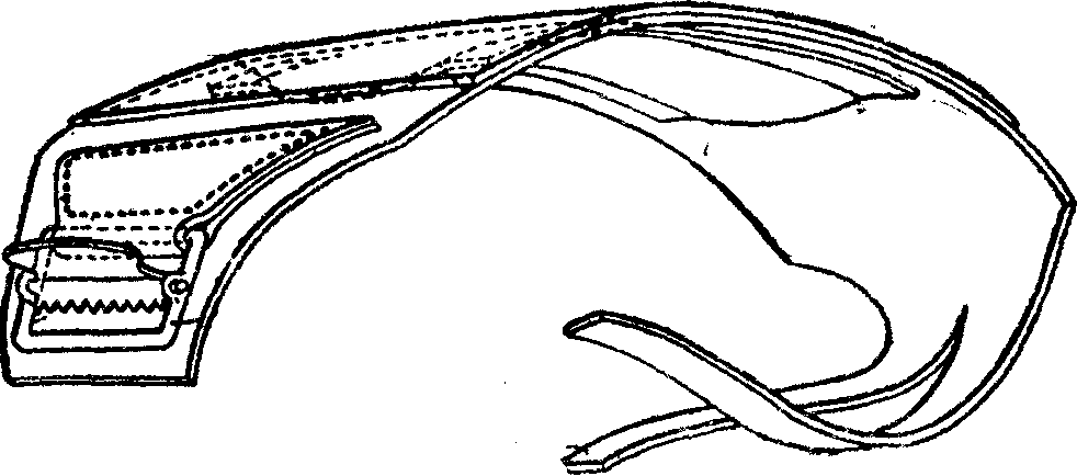 The leak-stopper is merely a bandage to be applied to the wound till help can be found. It consists of a strap of flexible material, provided at one end with a buckle and at the other with a pair of tongues.