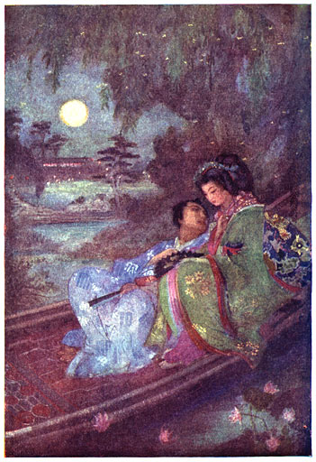Wanneer men Japansche legenden bestudeert, wordt men voornamelijk getroffen door het universeele, dat haar kenmerkt, en door haar scherpe tegenstellingen. De meeste volken hebben de zon en de maan, de sterren en de bergen, en alle groote werken der Natuur als godheden vereerd; maar de Japanners hebben de roode bloesems der azalea’s beschreven als de vuren der Goden, en de witte sneeuw van den Fuji als de gewaden van Goddelijke Wezens. Hun legenden zijn in ieder geval zeer poëtisch, en zij, die den Berg Fuji vereerden, hadden ook spookachtige verhalen te vertellen over het nietigste insect. Niet genoeg kan de nadruk gelegd worden op de liefde van Japan voor de Natuur. De oudste mythen, in de Kojiki en de Nihongi medegedeeld, zijn van zeer veel belang, maar zij kunnen niet worden vergeleken met de latere legenden, die een ziel hebben geschonken aan boomen, bloemen en vlinders, of met de vrome overleveringen, die zoo teeder en toch zoo krachtig de goddelijke beteekenis der Natuur hebben geopenbaard. Het Feest der [XVIII]Dooden kon alleen zijn voortgekomen bij een volk, waarvoor het schoone de voornaamste steun en de vreugde van het leven is, immers dat feest is niets anders dan een aanmaning, om terug te keeren tot hun oude aardsche schuilplaatsen in den zomertijd, om over de groene heuvels te trekken, die met pijnboomen bedekt zijn, langs kronkelende paden te wandelen, langs meer en zeestrand, te vertoeven in oude, geliefde tuinen, en huizen binnen te treden, waar zij zooveel kunnen zien, zonder zelf gezien te worden. Voor het gemoed van den Japanner, voor hem, die nog den geest van Prins Yamato heeft behouden, is de meest vurige beschrijving van het Paradijs der Buddhisten niet zoo schoon als Japan gedurende den zomertijd.