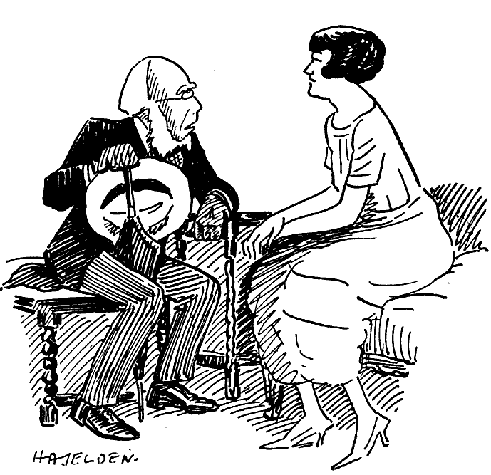 But the situation is only partially relieved. True, the old husband is dead all right, but the Mardens' marriage is still bigamous; they have been living all this time in what would be regarded in the eyes of Heaven (and, still worse, the county of Bucks) as sin. However, a trifling formality at a registry-office can rectify this and nobody need be any the wiser. This at least is Marden's attitude, always free from any suspicion of complexity. But his wife (if that is the word for her), being of a more subtle nature, determines to make profit out of the situation. She points out to him that she is at present the widow Tellworthy and that she must be wooed all over again, and can only be won on her own terms. These include a recognition of the niece's engagement (has not the young artist an equal right with Marden to a speedy marriage with the woman of his choice?) and a concession to her taste in futuristic curtains.