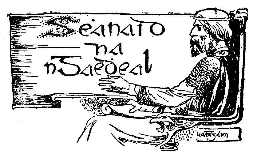 Tá an ceart ar fad ag Conán Maol. Teastuiġeann sgoil Ġaeḋealaċ uainn. Ní múineaḋ atá againn i nÉirinn anois aċt creaċaḋ, ⁊ tá a rian orainn. Tá an donas a' teaċt ar ár dtír. Ní'l againn aċt bliaḋain níos measa 'ná a ċéile. Tá muinntir na tuaiṫe a' scaipeaḋ agus a' meaṫaḋ, ⁊ tá na sráid-ḃáiltí beaga ag dul i n-olcas gan aonaċ gan margaḋ foġanta.