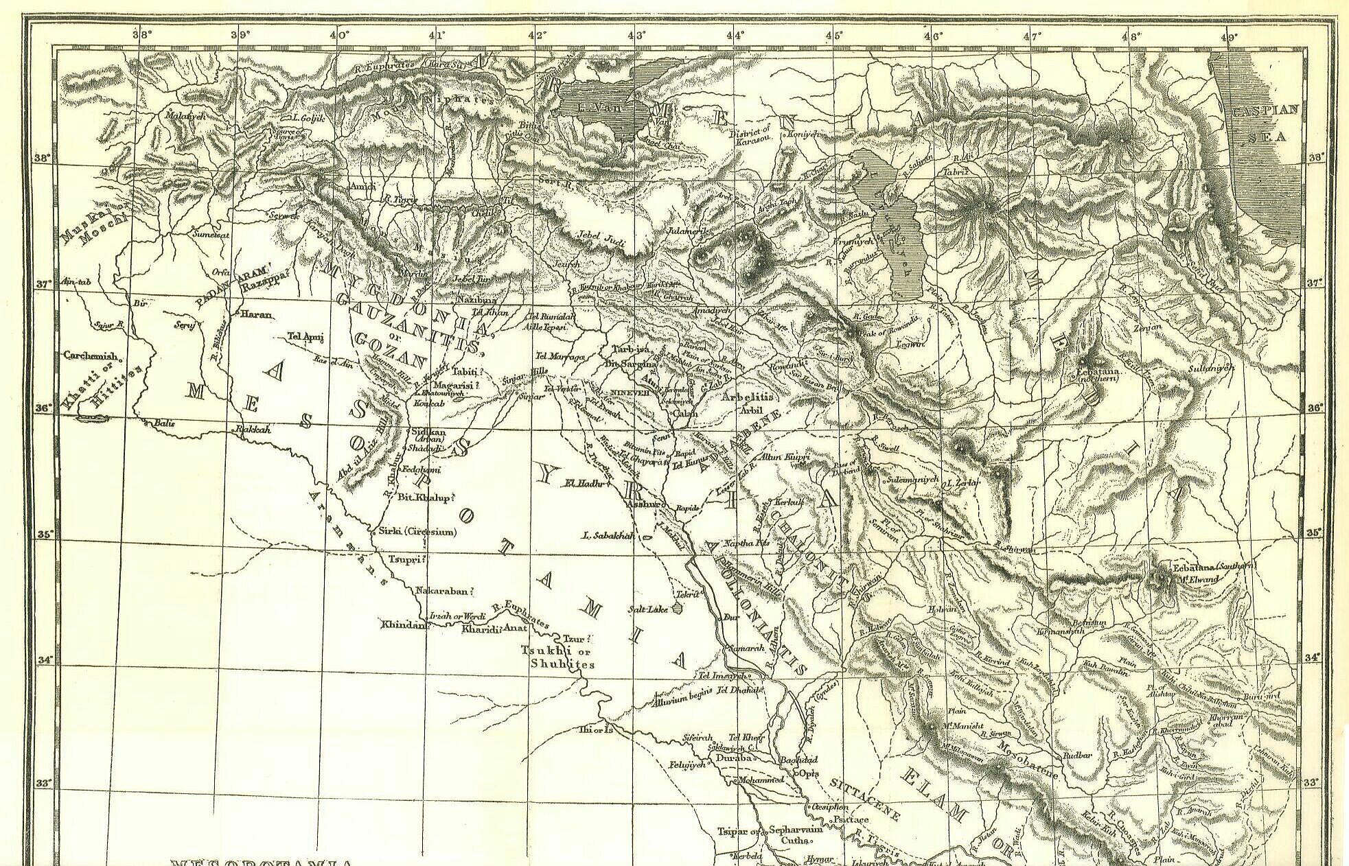 It is with the western or plain tract that we are here concerned. Between the outer limits of the Syro-Arabian desert and the foot of the great mountain range of Kurdistan and Luristan intervenes a territory long famous in the world’s history, and the chief site of three out of the five empires of whose history, geography, and antiquities it is proposed to treat in the present volumes. Known to the Jews as Aram-Naharaim, or “Syria of the two rivers;” to the Greeks and Romans as Mesopotamia, or “the between-river country;” to the Arabs as Al-Jezireh, or “the island,” this district has always taken its name from the streams, which constitute its most striking feature, and to which, in fact, it owes its existence. If it were not for the two great rivers—the Tigris and Euphrates—with their tributaries, the more northern part of the Mesopotamian lowland would in no respect differ from the Syro-Arabian desert on which it adjoins, and which in latitude, elevation, and general geological character it exactly resembles. Towards the south, the importance of the rivers is still greater; for of Lower Mesopotamia it may be said, with more truth than of Egypt, that it is “an acquired land,” the actual “gift” of the two streams which wash it on either side; being, as it is, entirely a recent formation—a deposit which the streams have made in the shallow waters of a gulf into which they have flowed for many ages.